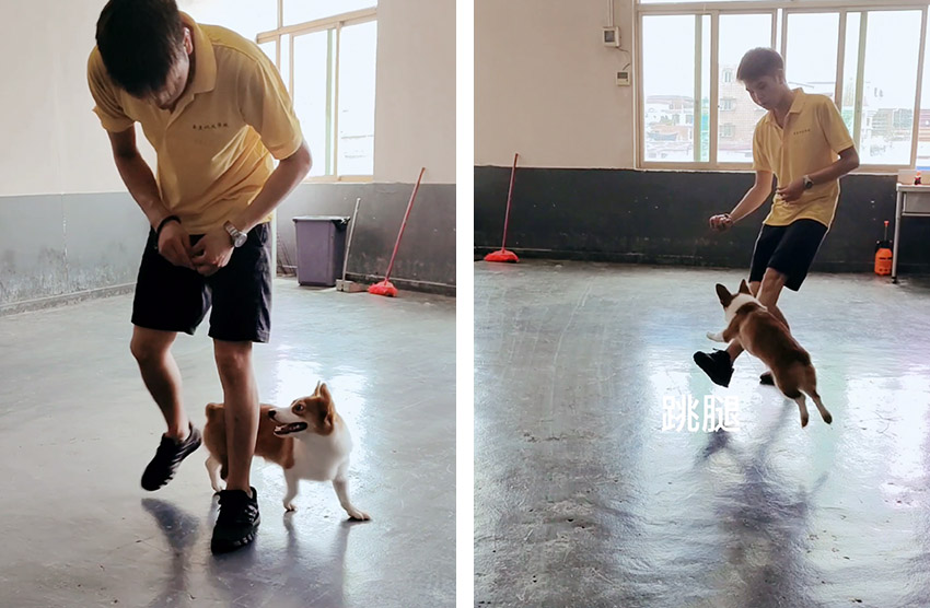 经过训练后狗狗,能听懂基本指令,在训练过程中还学会了跳腿、穿腿、装死等趣味性训练。