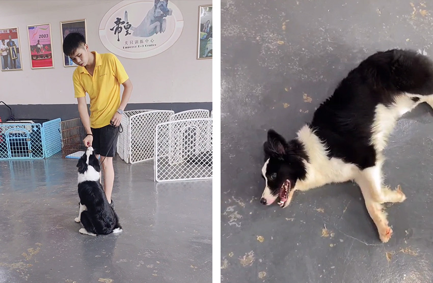 于是,凌小姐带上1岁的边牧狗狗来到了广州帝皇训犬基地。经过赖广南校长对狗狗进行评估之后,发现这只边牧比较胆小,还有严重的追车行为,主要是因为狗狗平时的社会化训练、活动太少,加上品种特性,导致它看到快速移动的物体会特别感兴趣,俗话说“DNA动了”。